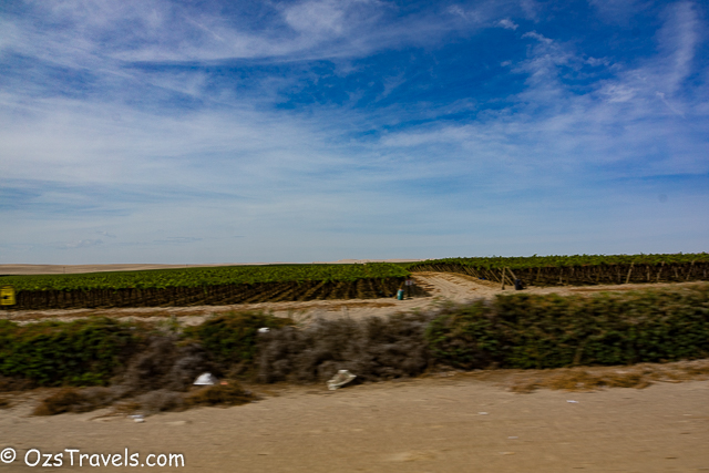 We were taken through the town of Ica on the way to the two wineries, the first, Bodegas Vista Alegre, was a commercial operation that produces a large selection of wines. Our guide around the winery by Jesus, who showed us around the vineyard and the different wine making process associated with the various grapes, as well as how they make Pisco.