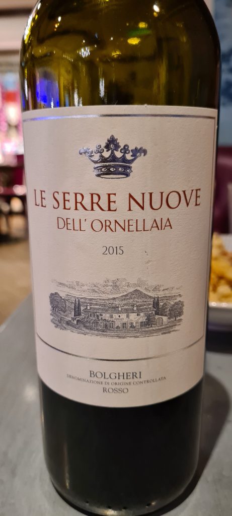 For the wine we ordered a bottle of 2015 Le Serre Nuove Dell’ Ornellaia from the Vintages wine list. Pretty good I would give it a 3.5 out of 5 on Oz’s Travels Wine Rating.