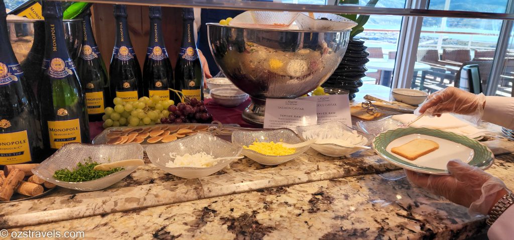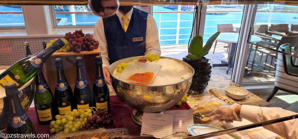 After the sail away it was time to attend another cocktail party, this one is for Seven Seas Society Members who have sailed more than 75 nights on Regent, which I will have done by the end of the Cruise so considered to be a Gold member now… No caviar this time though, maybe they ran out at breakfast…