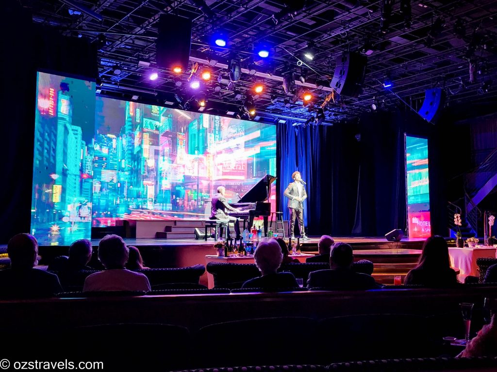 This was Emceed by the Cruise Consultant, she listed out where the various ships of the Regent Fleet would be next year, most will be on their way to Copenhagen. One of the Musical acts, Tiano, Shimi Goodman and Chris Hamilton, played their tribute to Broadway / the West End shows, a bit of fun.