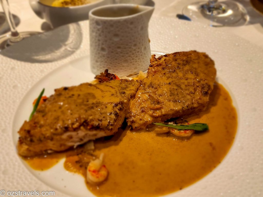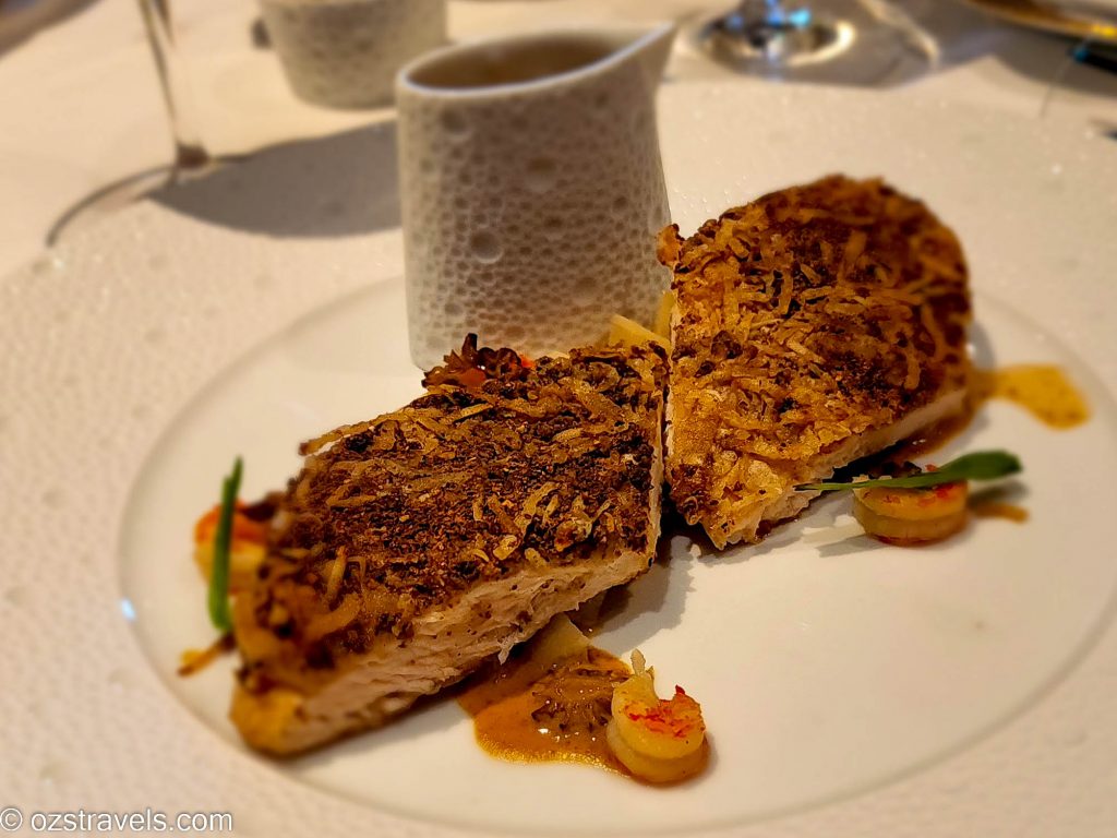 Chicken Supreme with Morels & Aged Comté Cheese Crust, Fine Champagne Cognac @ Crayfish Sauce, Braised Salsify.