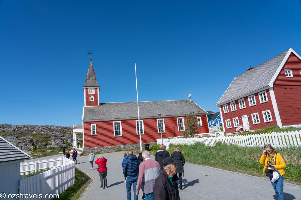overlooks the sea. Other prominent historical buildings include Nuuk Cathedral. Consecrated in 1849, it was constructed with so-called half-timbering, a technique where the timber frame was filled with soapstone and talc. That was later covered with the red paneling seen today.You will also drive through Nuuk’s neighboring suburbs, which include Nuussuaq and the more contemporary Qinngorput district. Regardless of where you travel, the craggy mountains provide a