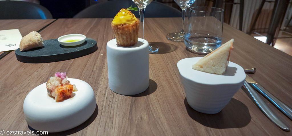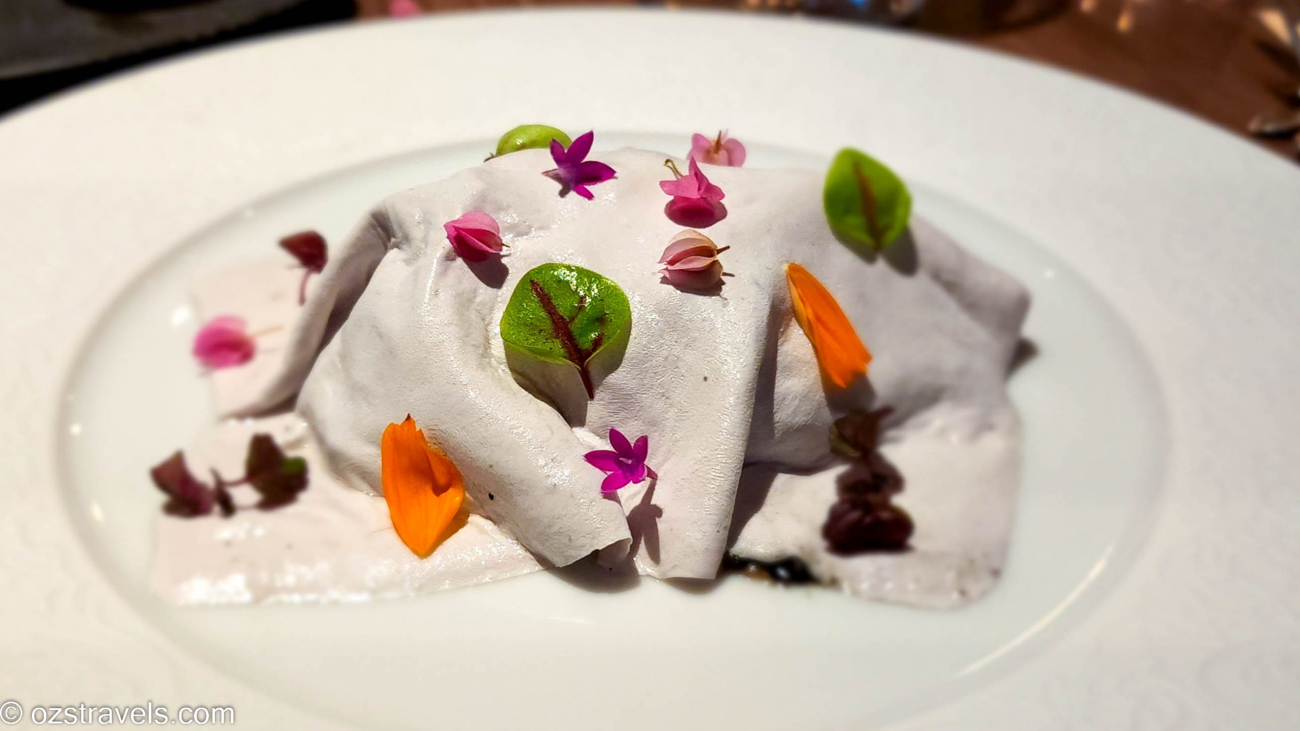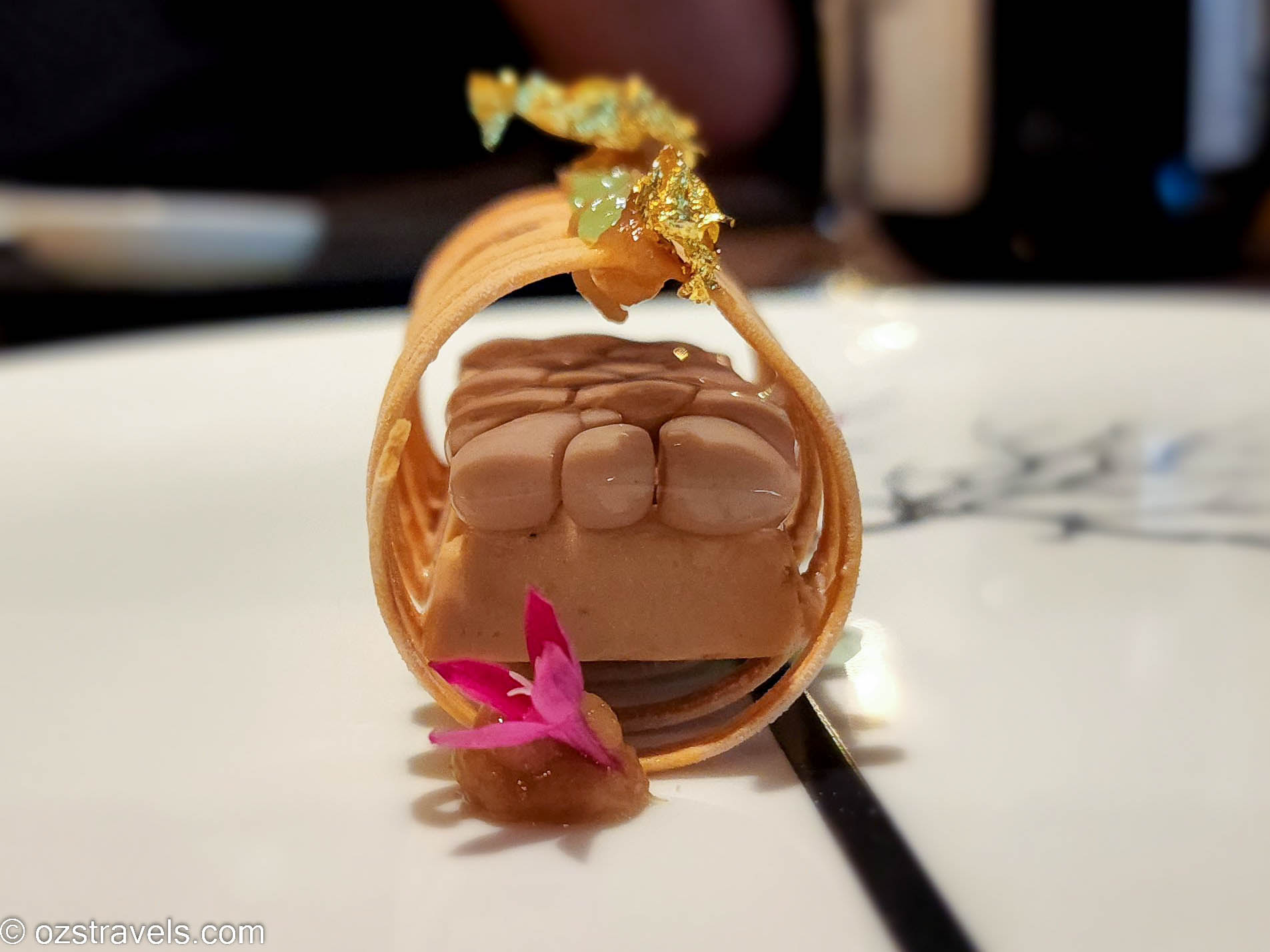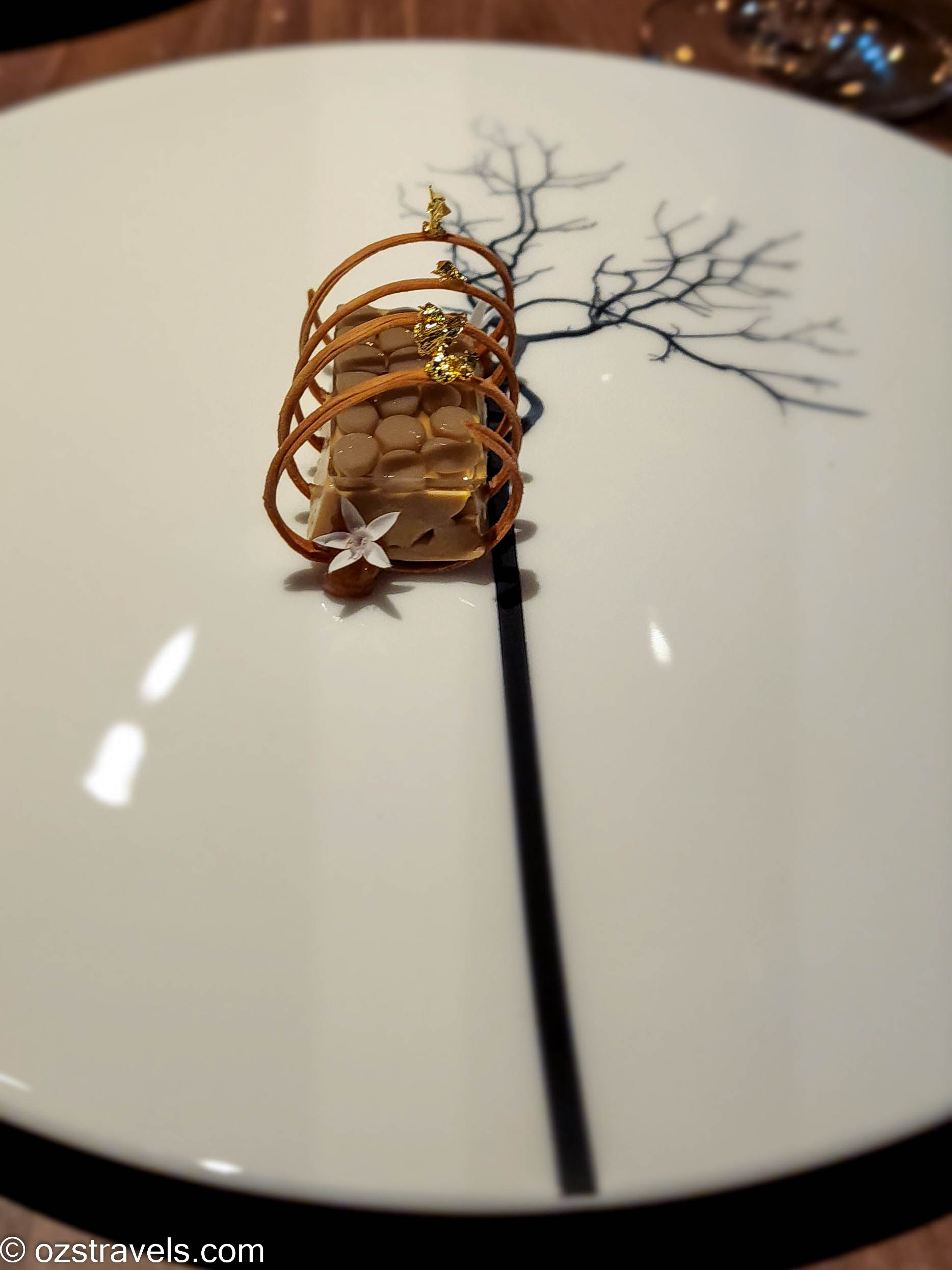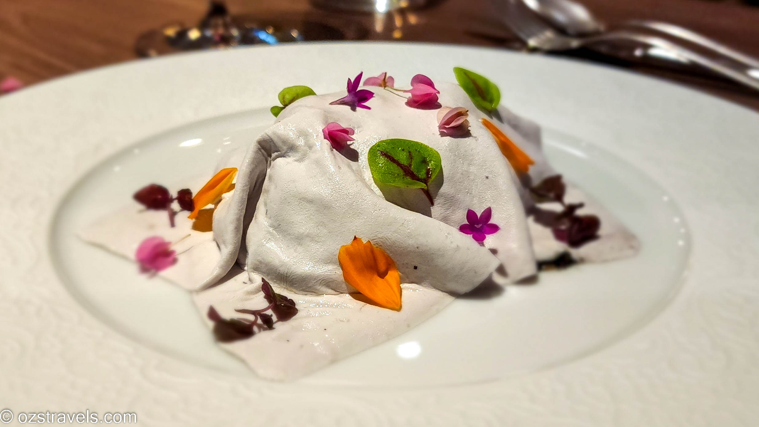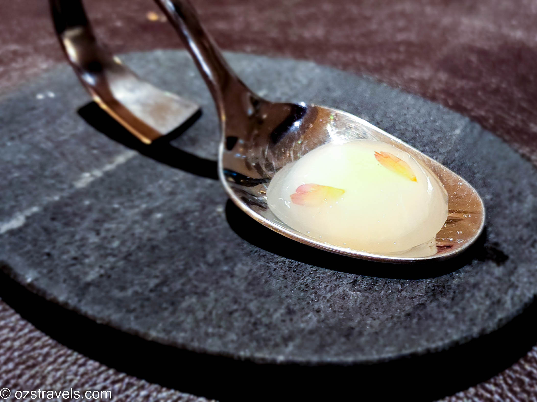 This is an interesting dish with cuttlefish and squid ink rice, the white covering includes cuttelfish (and what else I can’t remember, was too busy trying to work out how to take its picture to remember to listen). Very nice, I liked the combinations.