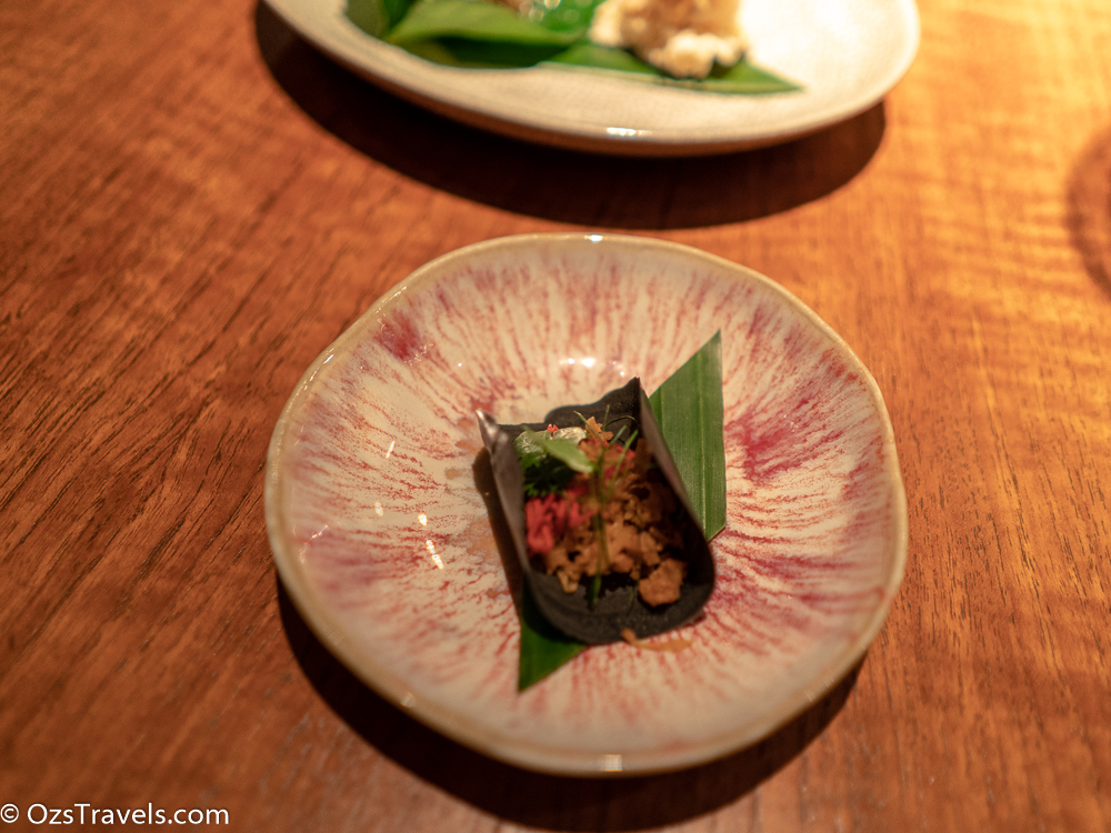This dish you had to unwrap and then eat with a rice cracker. Maannnnnnnnnnnnnn the flavours of spice and chili, that lingered after the ginger, lime and different types of seafood, prawn, crab, grouper, had dissipated. What a great dish, I think that it was my favourite.