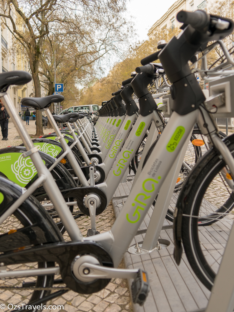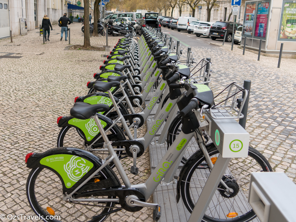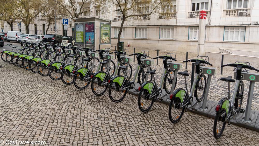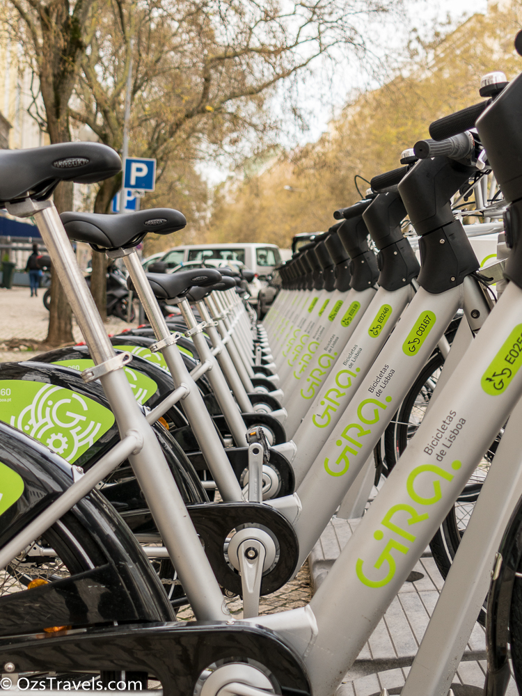 Share Bikes in Lisbon, they are stored in a more orderly fashion than in Singapore!