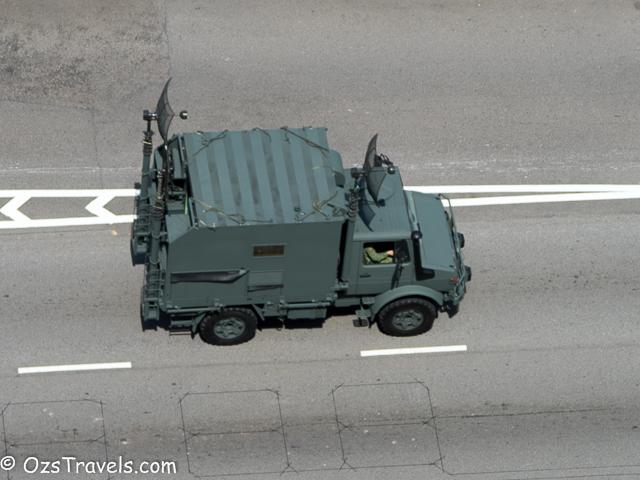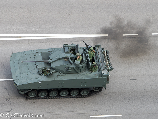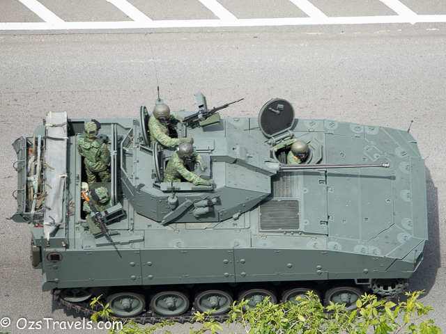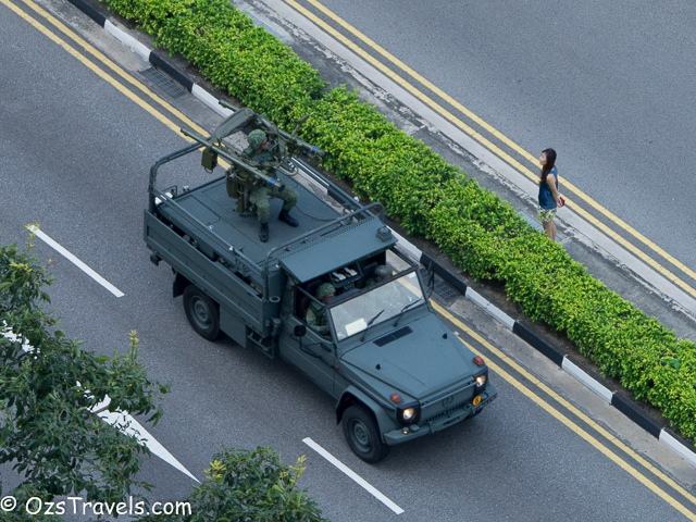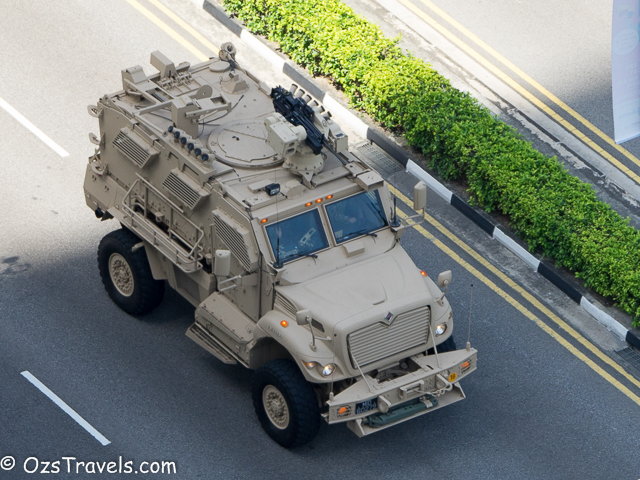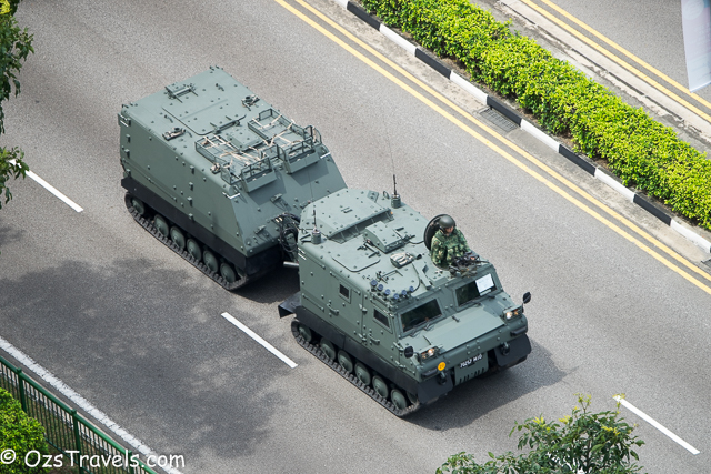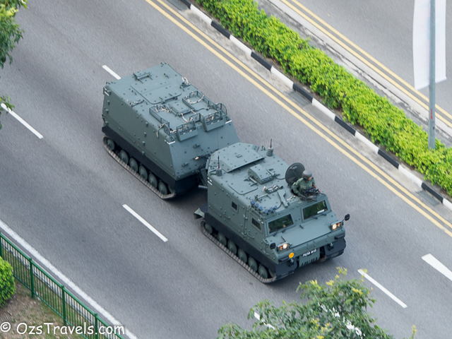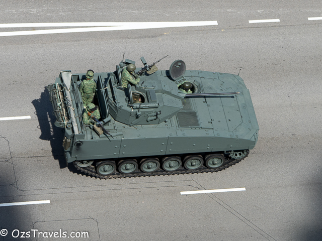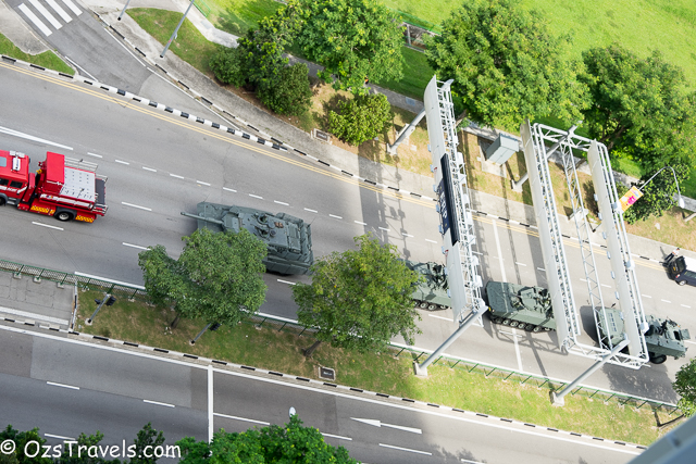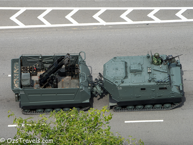 On Saturday 20 June 2015 my quiet Saturday was disturbed by some strange noises from outside, it was Singapore Military and Civil Defence Force vehicles practising for the SG50 National Day Parade. The practice started at about 1pm and went through until around 10pm. Every Saturday from now until National Day on 09 Aug 2015 will be used to practice for the parade, including a fly past (next post will include photos of the fly past) and the fireworks display, which, unfortunately, I am not able to see from my balcony.