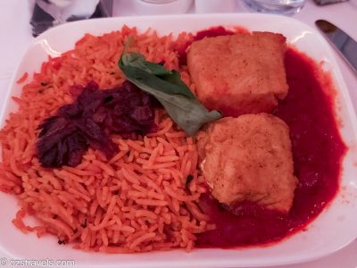 Hamour machbous – Hamour marinated in Middle Eastern spices and served with aromatic rice, topped with fried onions. (Hamour is a fish BTW)