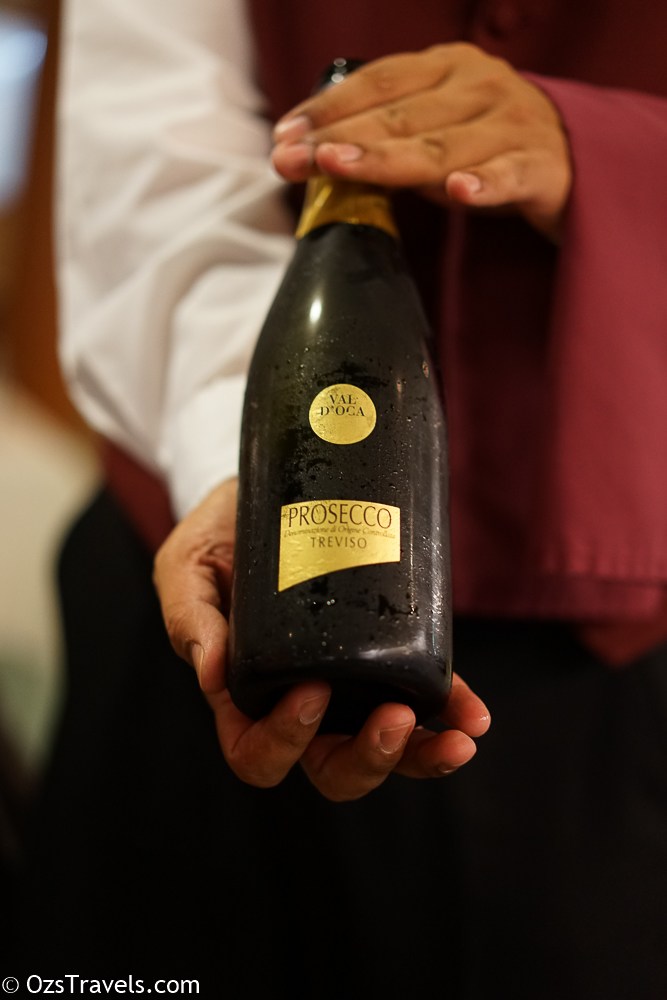 We started our dinner in Sette Mari for our appetizers and soup courses. To start the dinner off right we went with the Val D’oca Prosecco D.O.C Brut, a refreshing and balanced sparkling, followed by a Paripaso Cabinet Sauvignon, good colour, a muted nose with some blackberry and spice aromas, it did not have the tannins or structure I prefer.