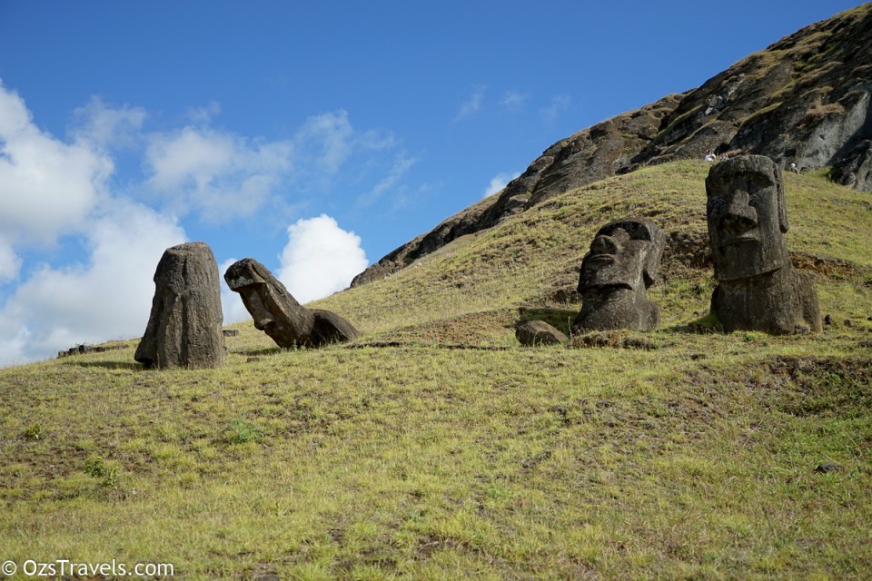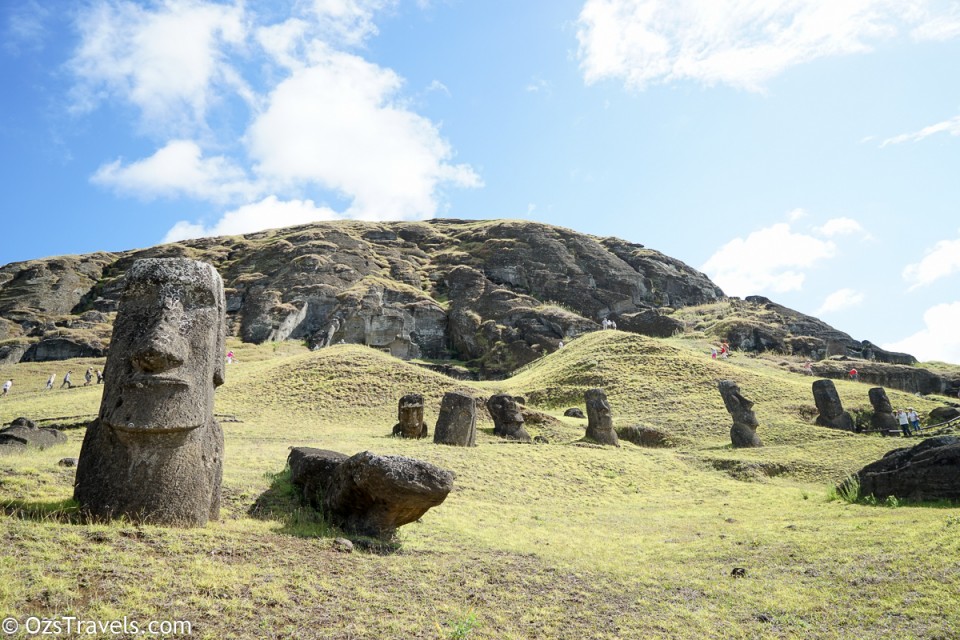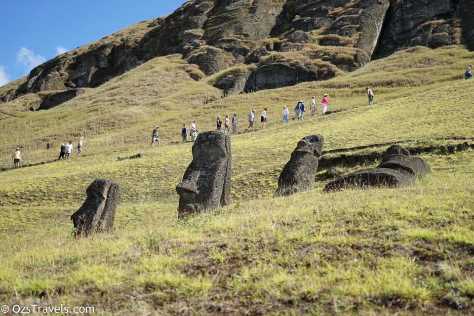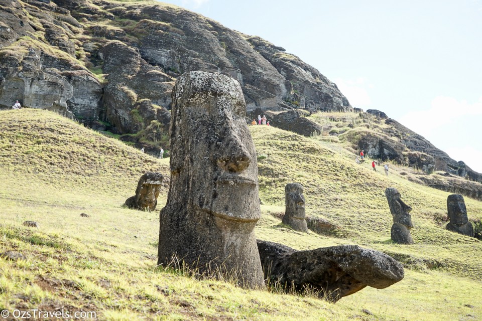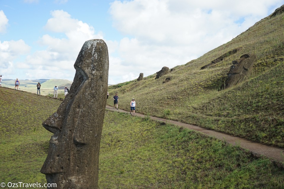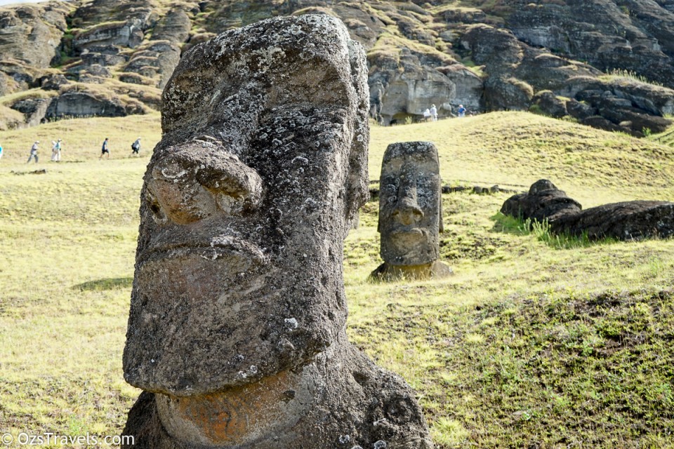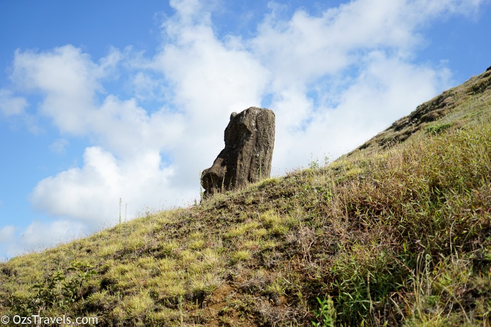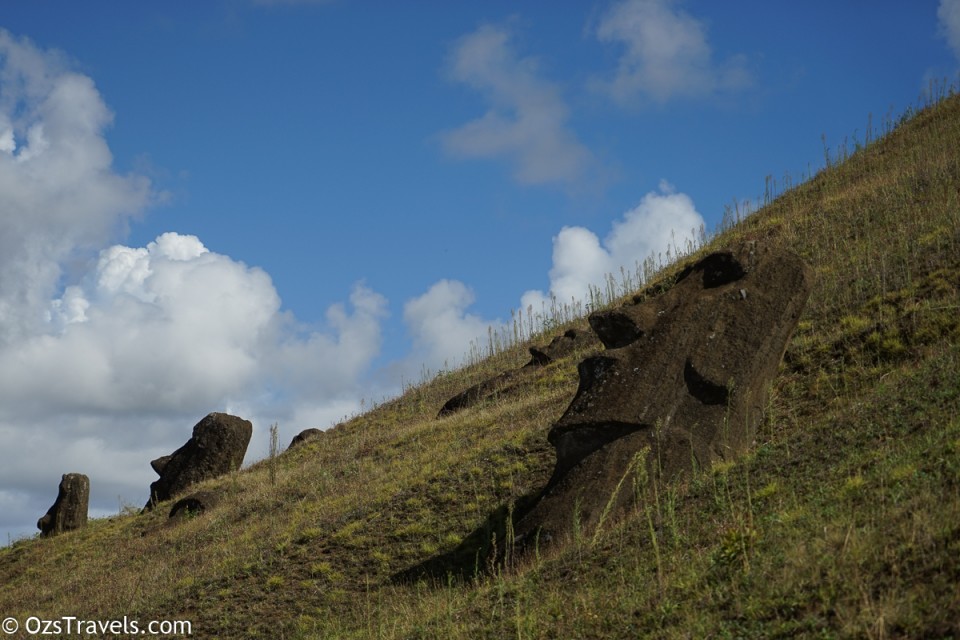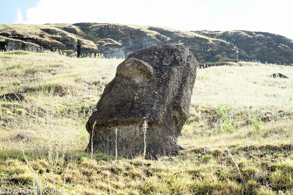 Our next stop was Rano Raraku, one of the quarries on the island where Moai were carved. It is estimated that 95% of the Moai were carved on-site at Rano Raraku. It was an amazing place to visit, not sure how to describe it. Moai in various states of construction all over the quarry.