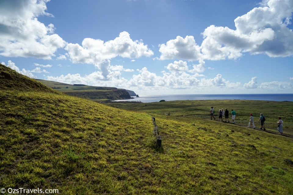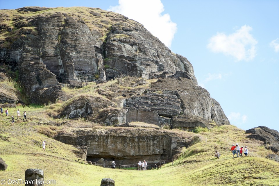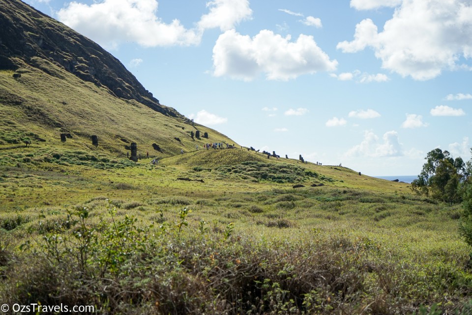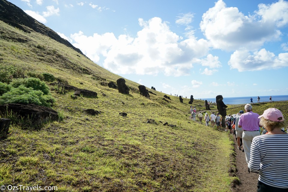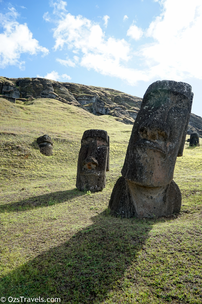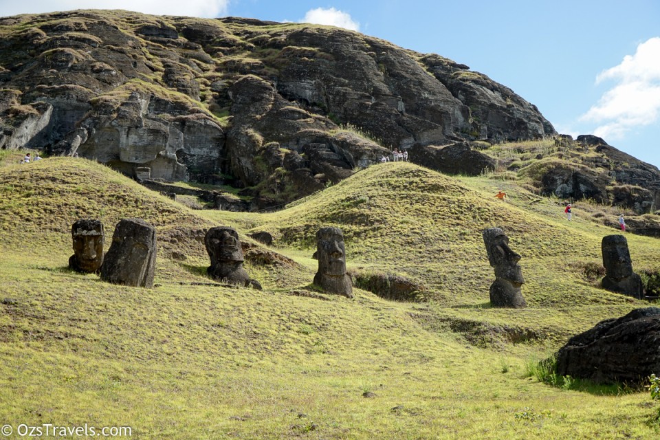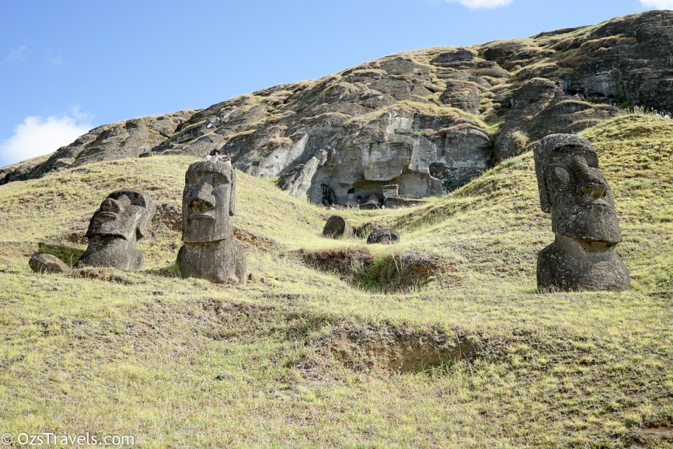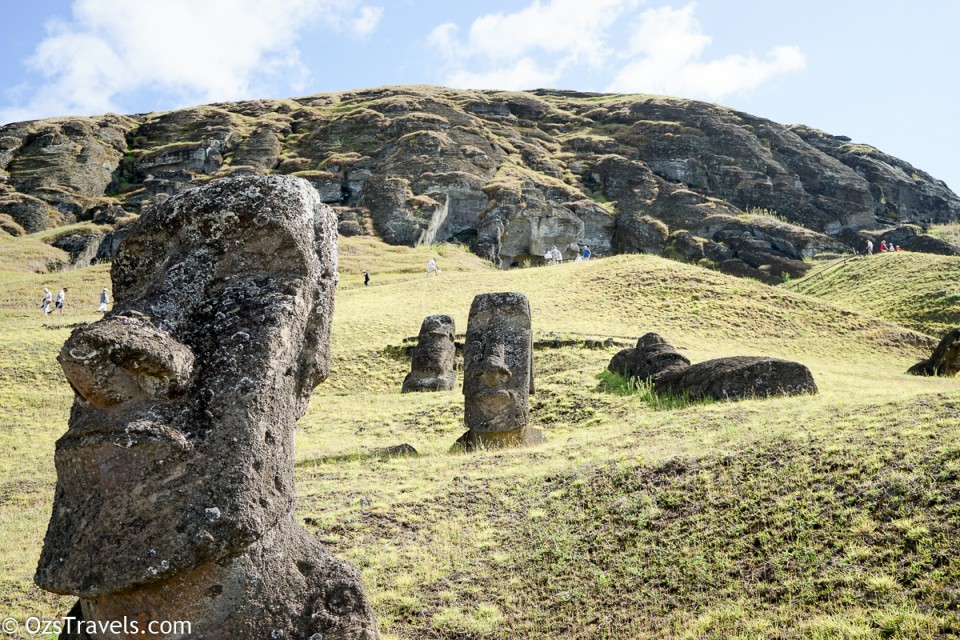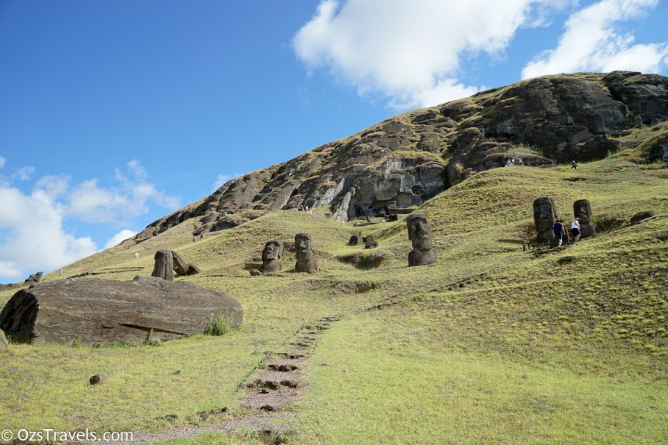 Our next stop was Rano Raraku, one of the quarries on the island where Moai were carved. It is estimated that 95% of the Moai were carved on-site at Rano Raraku. It was an amazing place to visit, not sure how to describe it. Moai in various states of construction all over the quarry.