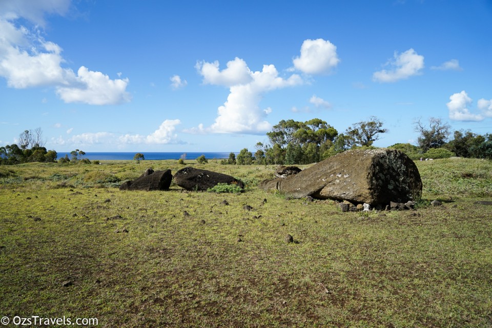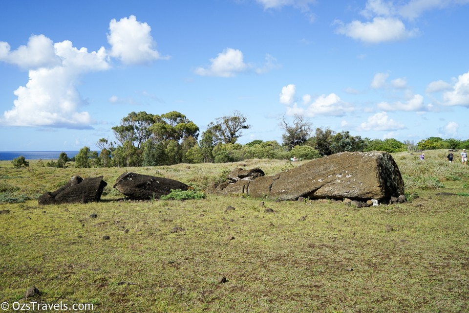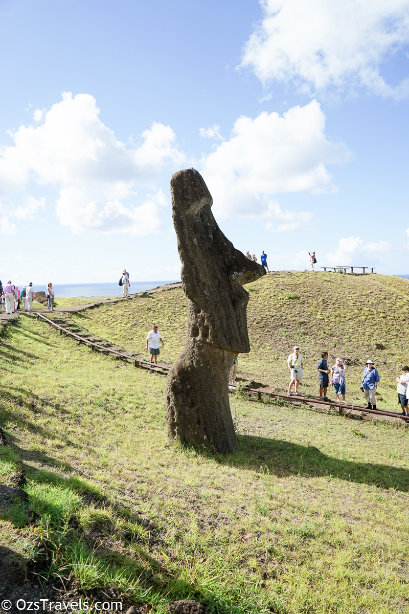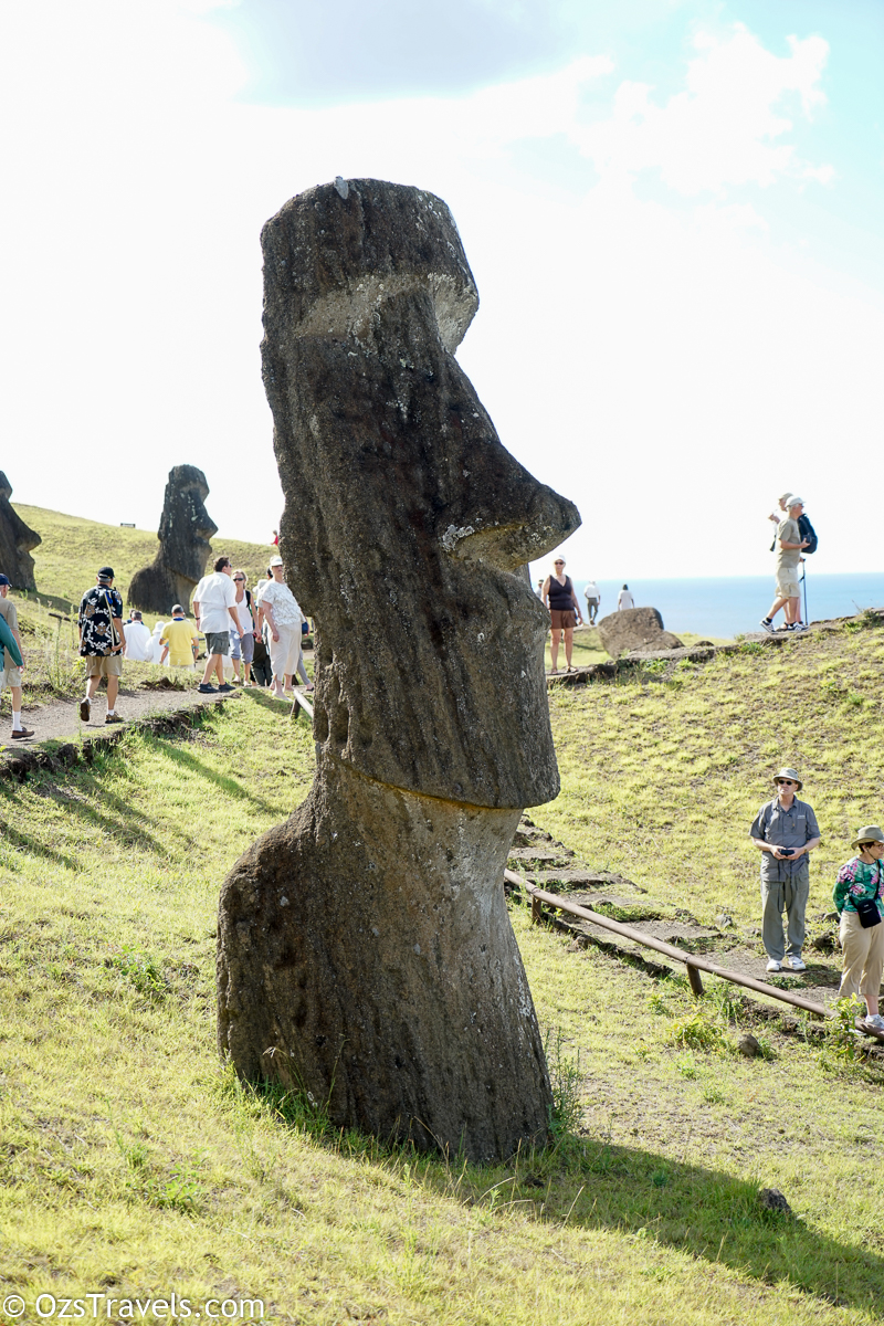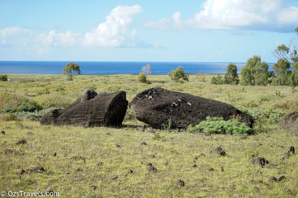 One of the mysteries of Easter Island is how they transported the Moai from the quarries to their eventual resting place. A number of experiments have been conducted to work out if the Moai were transported using rollers made from the trees around the island or if they were “walked” to their destinations. “Walking” entails using ropes to rotate the Moai from onside to the next, moving forward slowly each time they rotate the Moai, like moving a refridgerator at home without wheels. Maybe both the “walking” and rolling methods were used, who knows.