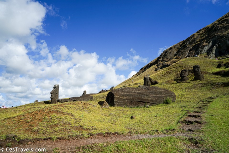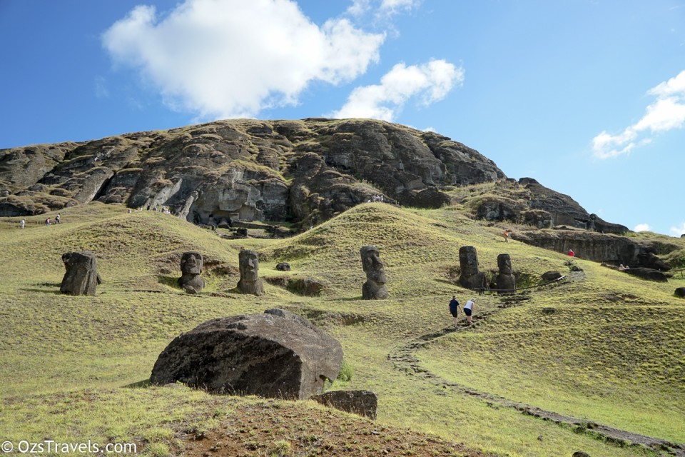 Like most of the statues on the island, these were made at the quarry at Rano Raraku and then transported to their eventual resting place. A visit to the quarry reveals all sorts of stone-faced moais in various stages of production. Some are half carved, others are broken, and still others seem to have been abandoned in mid-transport. It’s a fascinating peek at the past.