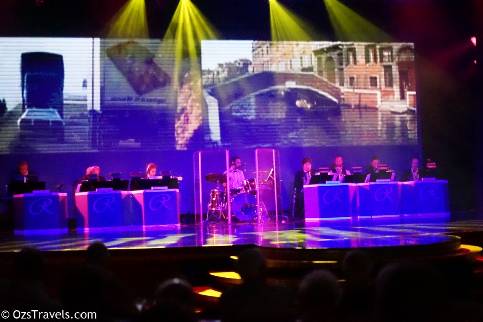 First up is a martini, there are so many to choose from, a nice problem to have. The cast and band are all dressed as either “Secret Service” or as “Bond Girls” all trying to look menacing. The host for the night was the self proclaimed “Junk Bond” our cruise director Wille Aames.