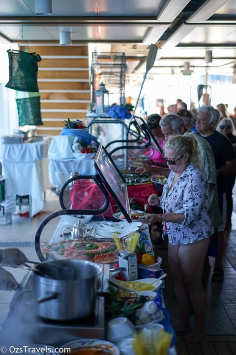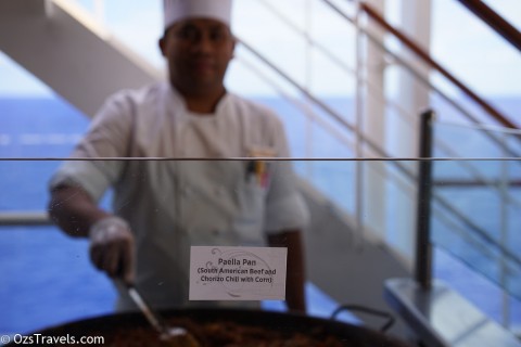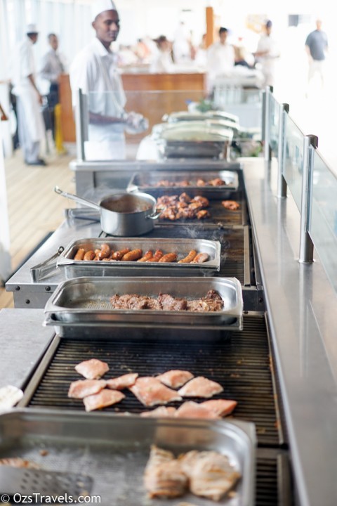 They also cook various types of burgers or a hotdog as well and provide a good selection of salads and desserts plus an ice-cream bar that lots of passengers kept raving about.