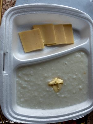 For breakfast I was provided a tasteless and a “very unattractive Victor” porridge with cheese. Looks like some muck a friend of mine, no names Lobert, would serve as a healthy dish