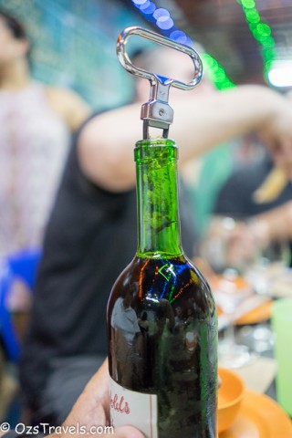 Wine Exchange Asia using a chopstick to push the cork back into the bottle of Grange before decanting the wine, not really the appropriate tool, but …..